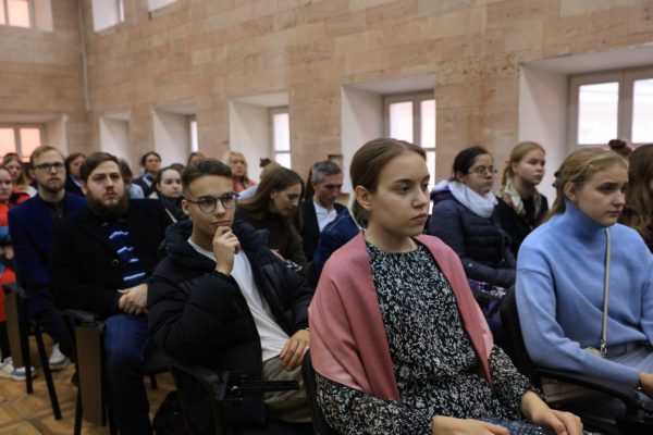 В актовом зале РПУ собрались студенты богословского и юридического факультетов, а также факультета психологии. Модератором встречи выступил А.В. Щипков.