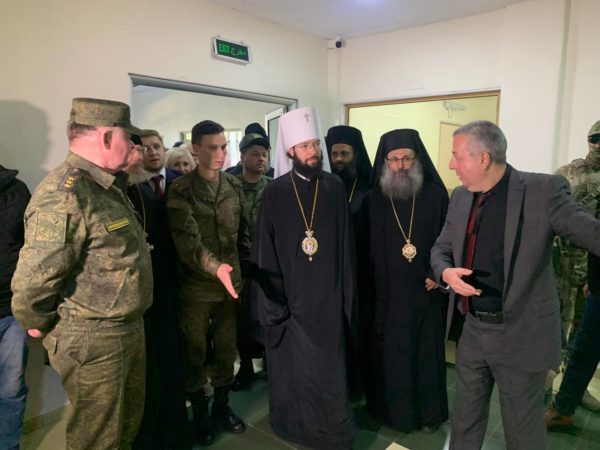 Митрополита Антония сопровождали командующий группой войск Вооружённых сил Российской Федерации в Сирийской Арабской Республике генерал-полковник А.Н. Сердюков, атташе по вопросам обороны Посольства России в Сирии контр-адмирал О.В. Корниенко, исполнительный директор Фонда поддержки христианской культуры и наследия Е.И. Скопенко, а также члены церковной делегации в составе советника Патриарха Московского и всея Руси Кирилла протоиерея Николая Балашова, заместителя председателя ОВЦС протоиерея Игоря Якимчука и помощника председателя ОВЦС священника Александра Ершова.