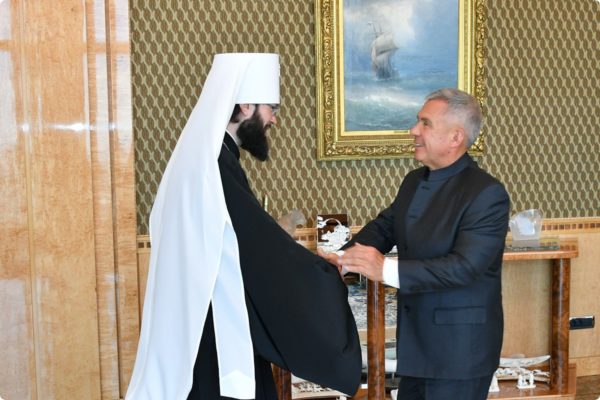 В завершение встречи Р.Н. Минниханов и митрополит Антоний обменялись памятными подарками.
