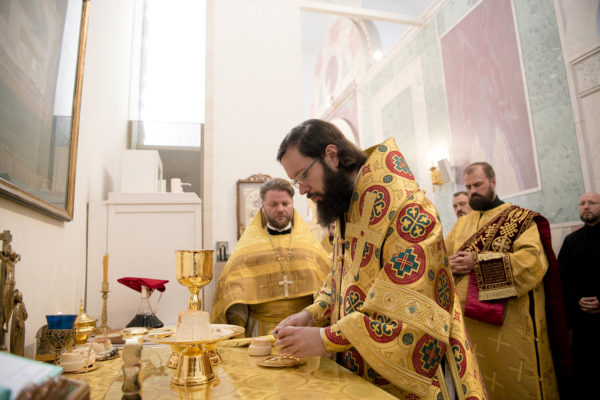 Митрополиту Антонию сослужили: секретарь Корсунского епархиального управления иерей Максим Политов, сотрудник cекретариата Управления делами Московской Патриархии иерей Евгений Морозов, клирики собора: протоиерей Игорь Трофим, иерей Георгий Шешко, иеромонах Ириней (Грибов), иерей Антоний Сиденко, протодиакон Николай Ребиндер, диакон Роман Оника и иеродиакон Дионисий (Волков).
