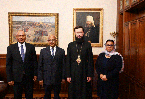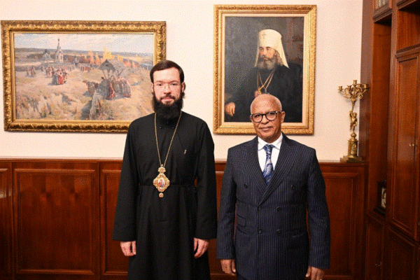 Митрополит Антоний тепло приветствовал главу эфиопской дипломатической миссии в Москве в стенах старейшего синодального отдела, отвечающего за внешние связи Русской Церкви.