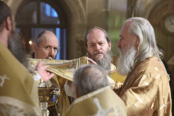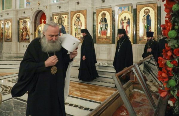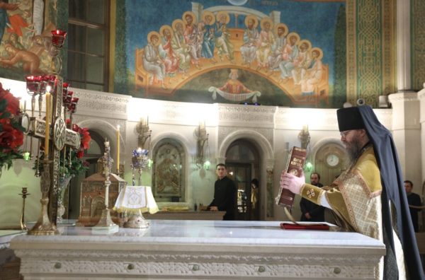 По окончании Божественной литургии владыка Феогност передал игумену Иоанну поздравление Святейшего Патриарха Кирилла: