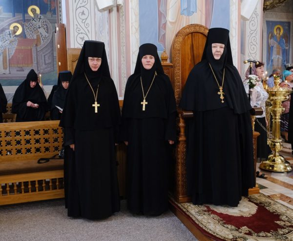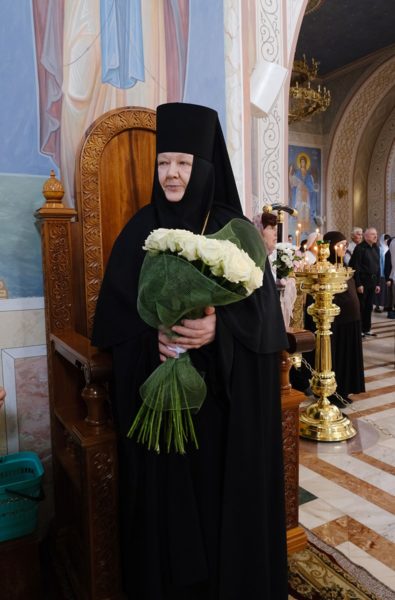 По окончании Литургии митрополит Феогност зачитал поздравительный адрес Святейшего Патриарха Московского и всея Руси Кирилла игумении Олимпиаде с днем тезоименитства.