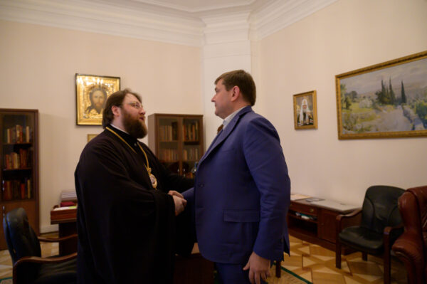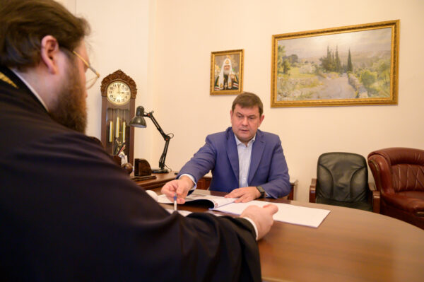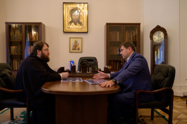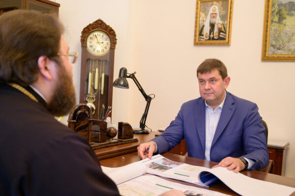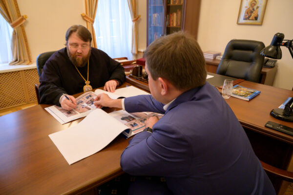 В Финансово-хозяйственном управлении Московского Патриархата председатель ФХУ митрополит Вологодский и Кирилловский Игнатий провел рабочую встречу с руководителем Департамента культурного наследия города Москвы Алексеем Александровичем Емельяновым.
