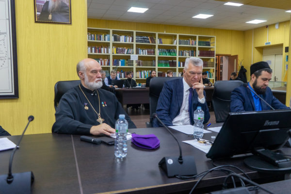 В заседании приняли участие: руководитель Миссионерского отдела Новосибирской митрополии, вице-президент Российской ассоциации центров по изучению религий и сект протоиерей Александр Новопашин; проректор по научно-богословской работе и заведующий кафедрой богословия Саратовской православной духовной семинарии протоиерей Димитрий Полохов; настоятель храмов святого апостола Филиппа в Шардже и святителя Николая Чудотворца в Тегеране архимандрит Александр (Заркешев); председатель Экспертного совета при Патриархе Московском и всея Руси по взаимодействию с исламским миром иеромонах Григорий (Матрусов); доцент кафедры исламоведения Казанской духовной семинарии, настоятель Новоиерусалимского архиерейского подворья иеромонах Роман (Модин); профессор Московского государственного лингвистического университета Р.А. Силантьев; заведующий кафедрой исламоведения Казанской православной духовной семинарии, доцент кафедры исламоведения Казанского (Приволжского) федерального университета В.Н. Рогатин; генеральный директор аналитического центра «Катехон», заместитель директора Института «Царьград» М.И. Якушев; заместитель начальника Центра межрелигиозного диалога Болгарской исламской академии Р.А. Фатхуллин, другие представители духовенства, преподавательского состава КазДС, экспертного сообщества. Прозвучали доклады на темы православно-мусульманских отношений, истории и вероучения ислама в разные исторические периоды в Османской империи и Кордовском халифате, деятельности Совместной Российско-иранской комиссии по диалогу между православием и исламом, богословской интерпретации отношения к иноверным в исламе, профилактики и преодоления конфликтов с участием религиозного фактора. В рамках секции состоялась церемония вручения книг издательства Фонда Ибн Сины библиотеке Казанской духовной семинарии.