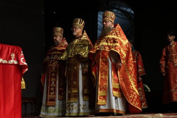 Богослужение совершили 13 архиереев: митрополит Ташкентский и Узбекистанский Викентий, глава Cреднеазиатского митрополичьего округа; митрополит Филиппопольский Нифон, представитель Патриарха Антиохийского и всего Востока при Патриархе Московском и всея Руси; митрополит Екатеринбургский и Верхотурский Евгений, митрополит Ханты-Мансийский и Сургутский Павел, митрополит Челябинский и Миасский Алексий, епископ Нижнетагильский и Невьянский Феодосий, епископ Серовский и Краснотуринский Феогност, епископ Рубцовский и Алейский Роман, епископ Каменский и Камышловский Мефодий, епископ Шадринский и Далматовский Владимир, епископ Златоустовский и Саткинский Петр; епископ Ремезианский Стефан, представитель Патриарха Сербского при Московском Патриаршем престоле; епископ Сызранский и Шигонский Леонтий в сослужении многочисленного духовенства Екатеринбургской и других епархий.