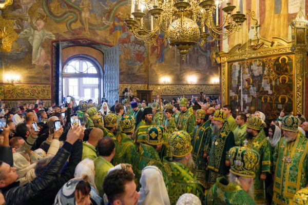 На сугубой ектении были вознесены особые прошения, Предстоятель Русской Православной Церкви прочитал молитву о Святой Руси.