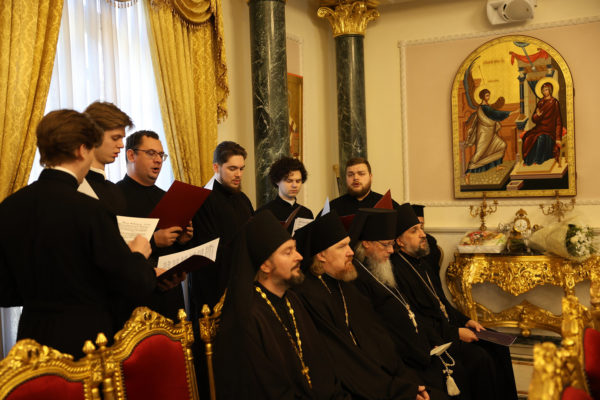 Блаженнейшего Патриарха Феофила и гостей приема приветствовал рождественскими песнопениями хор выпускников Сретенской духовной семинарии, сообщает сайт Миссии.