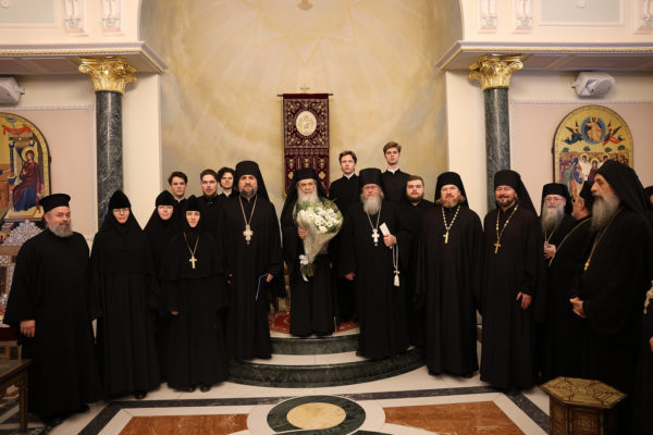 Блаженнейшего Патриарха Феофила и гостей приема приветствовал рождественскими песнопениями хор выпускников Сретенской духовной семинарии, сообщает сайт Миссии.