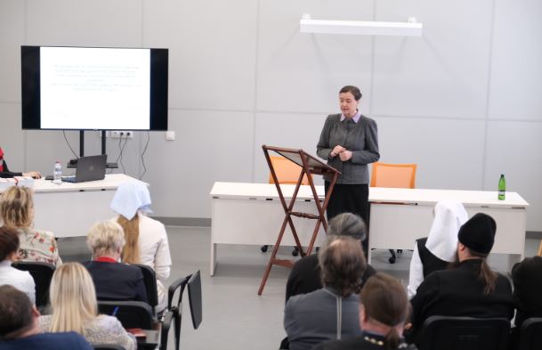 Татьяна Зальцман встретилась также с сестрами Свято-Георгиевского сестричества милосердия. Она провела для них лекцию «Уход с достоинством: как помочь себе и другим» и ответила на вопросы сестер милосердия.