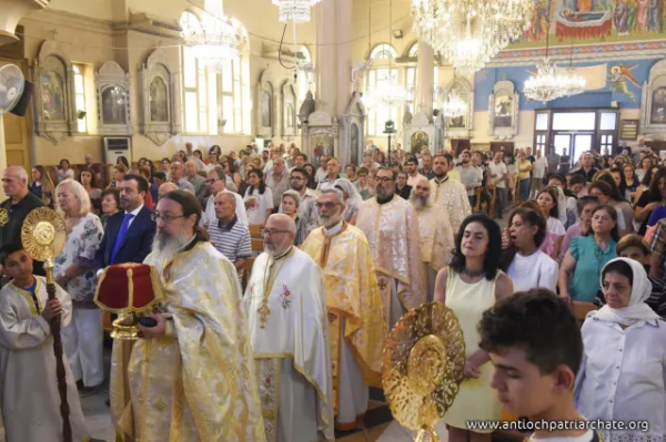 За Божественной литургией Блаженнейшему Патриарху Иоанну сослужили: епископ Селевкийский Роман, главный секретарь Синода Антиохийской Православной Церкви; епископ Сергиопольский Иоанн; епископ Иерапольский Арсений; епископ Ларисский Моисей; архимандрит Филипп (Васильцев), архимандрит Парфений (Ал-Латти) и соборное духовенство.