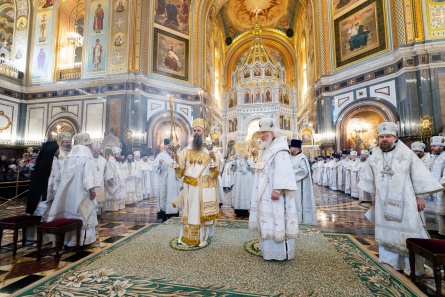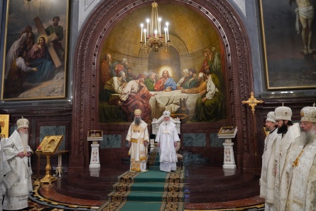 На сугубой ектении были вознесены особые прошения, Предстоятель Русской Православной Церкви прочитал молитву о Святой Руси.