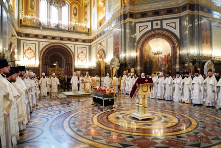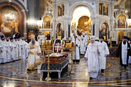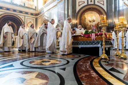Предстоятели Русской и Сербской Православных Церквей возглавили служение Литургии и отпевание отпевание епископа Моравичского Антония в Храме Христа Спасителя в Москве