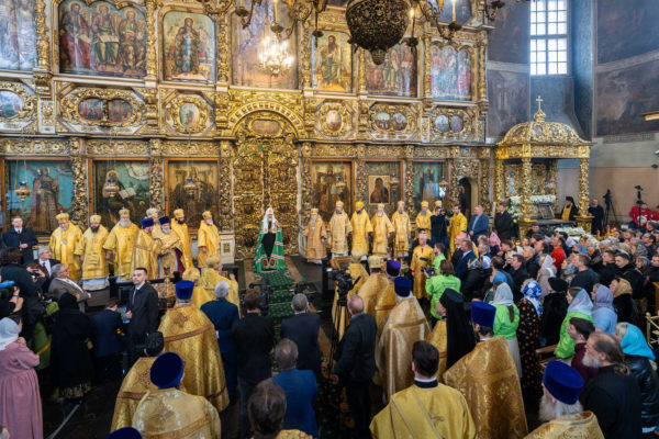 В Большом соборе Донской обители Предстоятель Русской Православной Церкви поклонился мощам святителя Тихона и совершил Божественную литургию святителя Василия Великого.