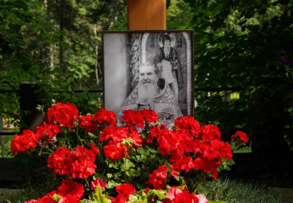 Затем Святейший Владыка совершил заупокойную литию у могилы насельника Валаамского монастыря, директора православного культурно-просветительского центра «Свет Валаама» архимандрита Мефодия (Петрова; 1961-2021). Архимандрит Мефодий скончался 22 июля 2021 года, на 61-м году жизни, от осложнений, вызванных коронавирусной инфекцией. Могила отца Мефодия находится слева от алтаря церкви Всех преподобных отцов, недалеко от могилы игумена Дамаскина (Кононова).