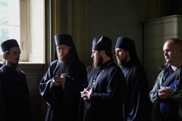 Предстоятеля Русской Православной Церкви сопровождали митрополит Санкт-Петербургский и Ладожский Варсонофий, наместник Валаамского монастыря епископ Троицкий Панкратий.