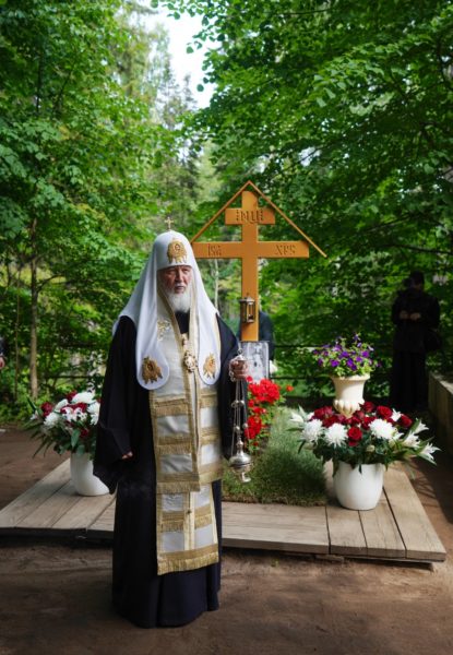 10 июля 2022 года, после освящения новопостроенного храма Всемилостивого Спаса Авраамиевского скита на Емельяновском острове, Святейший Патриарх Московский и всея Руси Кирилл посетил Игуменское кладбище Спасо-Преображенского Валаамского cтавропигиального монастыря на острове Валаам.
