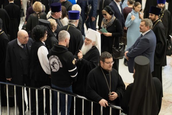 Также в заседании участвовали: члены Священного Синода — глава Среднеазиатского митрополичьего округамитрополит Ташкентский и Узбекистанский Викентий, митрополит Санкт-Петербургский и Ладожский Варсонофий, Патриарший наместник Московской митрополии митрополит Крутицкий и Коломенский Павел, Патриарший экзарх всея Беларуси митрополит Минский и Заславский Вениамин, председатель Отдела внешних церковных связеймитрополит Волоколамский Антоний; иерархи и духовенство Русской Православной Церкви; председатель Синодального отдела по взаимоотношения Церкви с обществом и СМИ В.Р. Легойда, председатель Императорского православного палестинского общества С.В. Степашин, представители органов государственной власти, депутаты Государственной Думы ФС РФ, синодальных учреждений Московского Патриархата, члены Бюро Президиума ВРНС, высшее духовенство традиционных религий, деятели науки, образования и культуры, представители общественности.