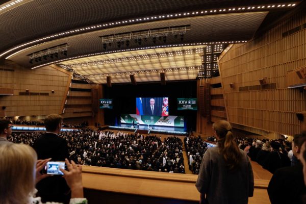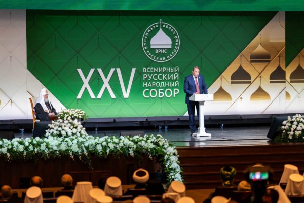 28 ноября 2023 года в Государственном Кремлевском дворце состоялось пленарное заседание XXV Всемирного русского народного собора, посвященное теме «Настоящее и будущее Русского мира». Заседание в Кремле стало главным событием юбилейного Собора, проходившего в столице России 27-28 ноября по благословению Святейшего Патриарха Московского и всея Руси Кирилла при поддержке Президентского фонда культурных инициатив.