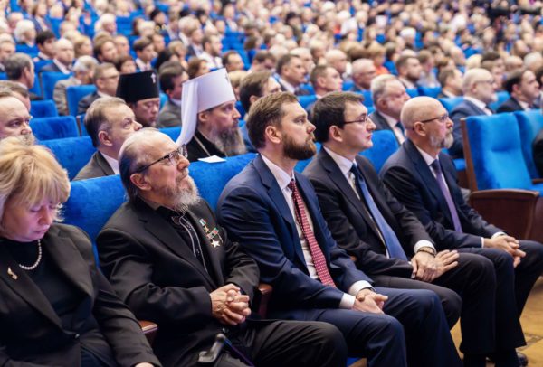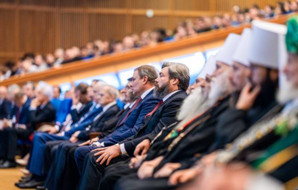 В заседании в Государственном Кремлевском дворце принял участие глава Всемирного русского народного собора Святейший Патриарх Московский и всея Руси Кирилл.