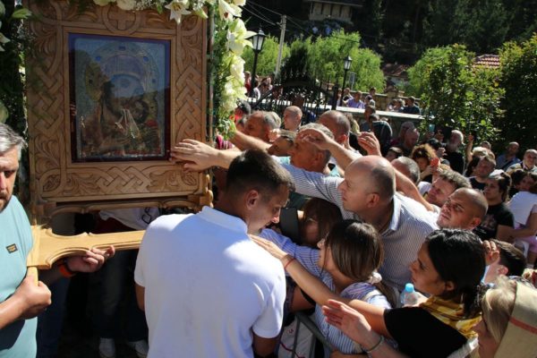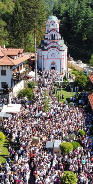 У светињи која чува мошти светих Зосима и Јакова сабрало се преко петнаест хиљада верних да заједно прославе велики јубилеј. У молитвеном јединству осећала се посебна благодат и небеска заштита Мајке Божје, чија се чудотворна икона већ девет деценија чува у Туману. После свете Литургије обављен је молебан са освећењем воде, свечана литија и кропљење народа. Верницима су на благослов подељени освећени листићи ловора и маслине, као и латице белих и црвених ружа.