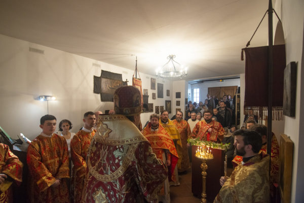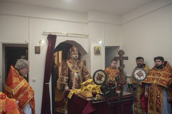 Иерарху сослужили настоятель прихода иерей Иоанн Димитров, клирик храма архимандрит Ефрем (Мецциани), клирик Преображенского храма г. Москвы иерей Кирилл Киселев, иеромонах Петр (Смирнов), проректор Духовно-образовательного центра имени преподобной Женевьевы Парижской, клирик Преображенского собора г. Кишинева (Республика Молдова) иерей Мариан Плэмэдеала, сопровождавшие архипастыря клирики Троицкого собора иерей Даниил Набережный и диакон Роман Оника.