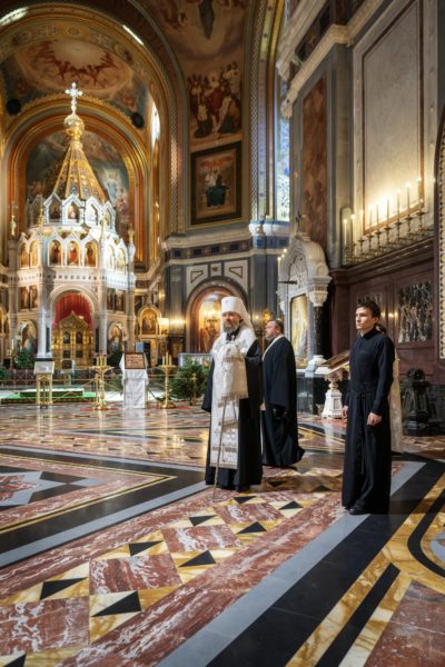 Богослужебные песнопения исполнил Камерный хор Храма Христа Спасителя под управлением С.С. Сидоренко.