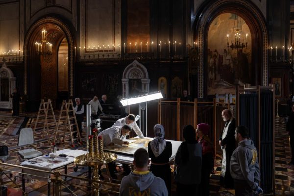 Принесение иконы Святой Троицы, написанной преподобным Андреем Рублевым, в Храм Христа Спасителя