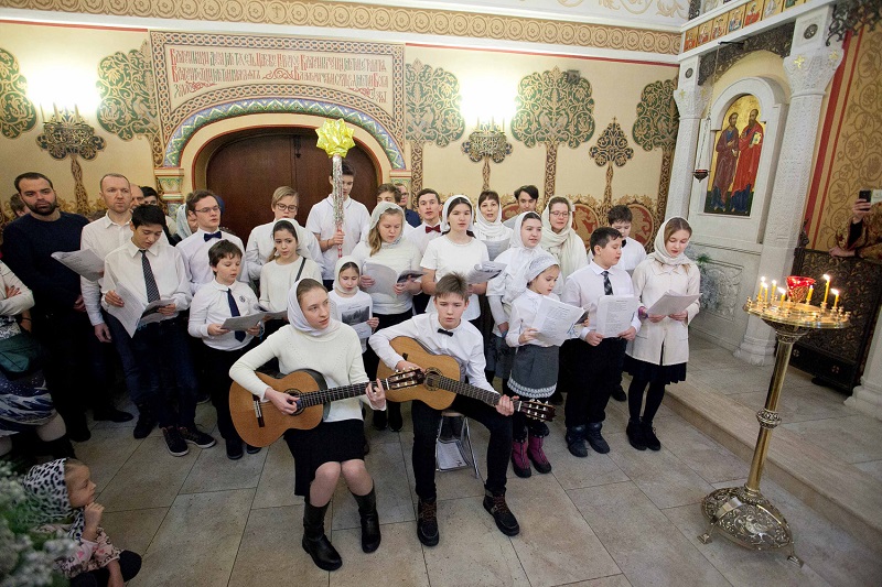 Центральной частью рождественского лагеря стала совместная молитва в день Рождества Христова на Божественной литургии на подворье Данилова монастыря, в храме святых мучениц Веры, Надежды, Любви и матери их Софии. После Богослужения дети и подростки поздравили маленьких пациентов ФНКЦ имени Дмитрия Рогачева с Рождеством Христовым, спев колядки и праздничные песни.