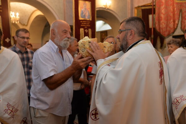 У наставку свете Литургије служен је молебан светитељу Рафаилу, а затим је преломљен колач и освећено славско кољиво. Залог кумства од овогодишњег кума Душана Поповића преузела је Кристина Романов.