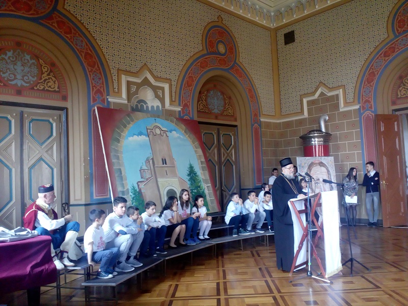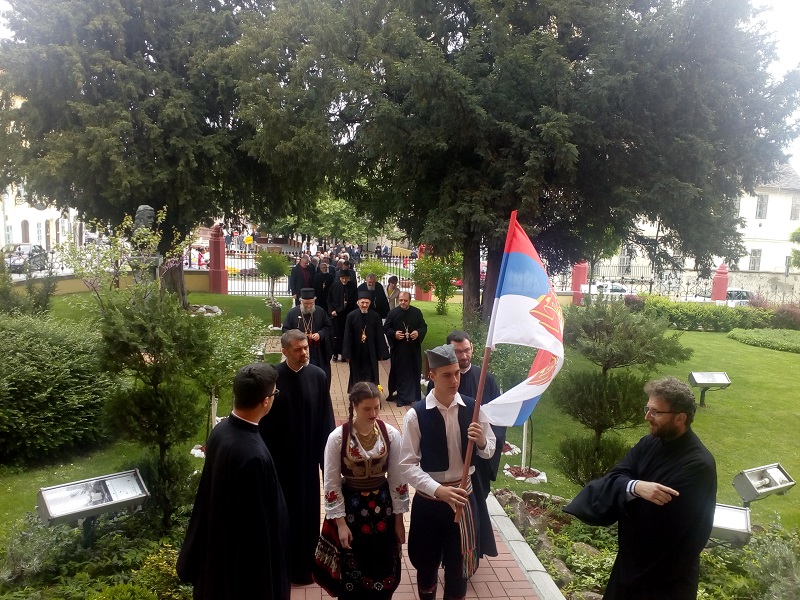 Гуслар Петар Мишовић, члан гусларског друштва Свети Никола загуслао је Збор зборила господа `ришћанска. Карловачки богослови су отпојали Стихиру Србима светитељима, док је ученик другог разреда Марко Дивљак читао делове из беседа Светог Николаја Охридског и Жичког. Свечана академија је завршена песмом Људи ликујте, народи чујте, Христос воскресе, радост донесе.