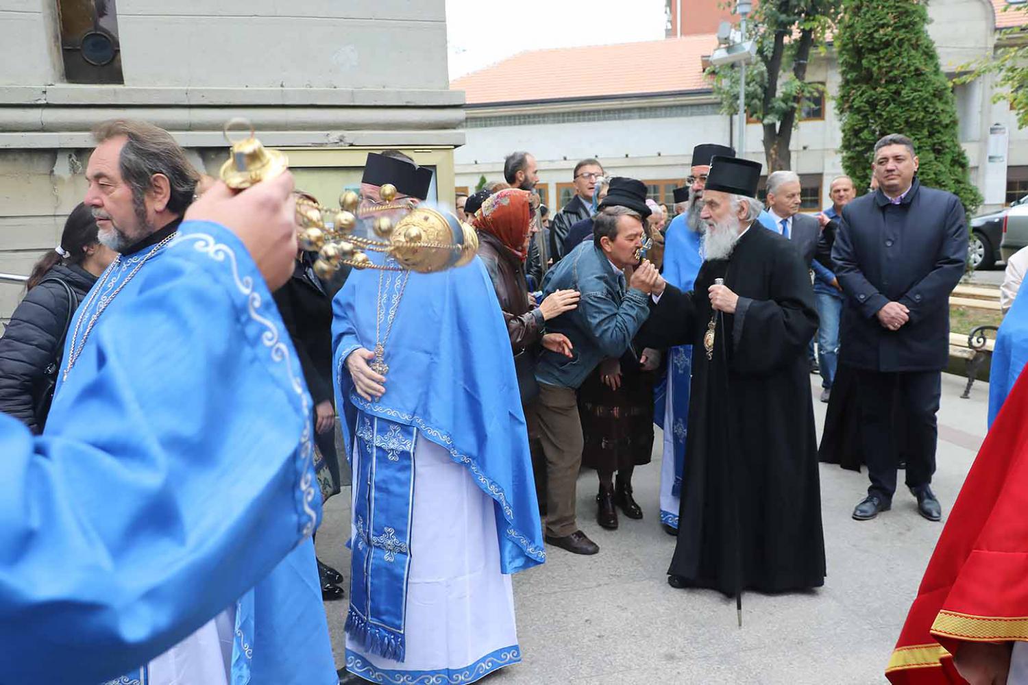 Његовој Светости Патријарху на светој Литургији саслуживали су протојереји-ставрофори Бранко Митровић, Игњат Товаревић, Милорад Никшић, Часлав Маринковић, Славко Божић и Драгомир Сандо, као и ђакони Саво Топаловић и Марко Станковић. Појао је хор храма који води гђа Бисерка Васић.