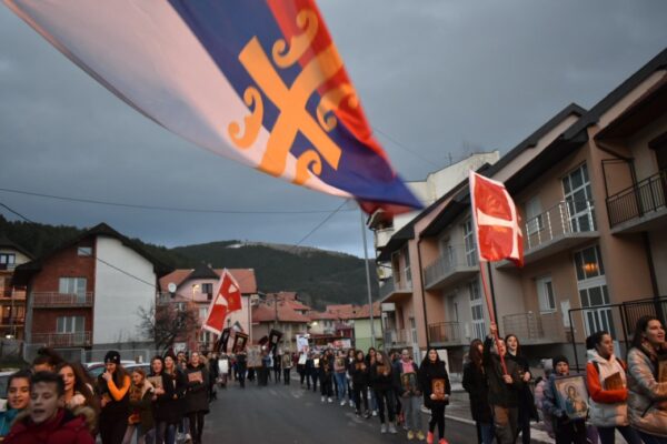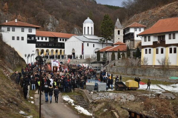 Пред полазак литије испред храма окупљенима се придружила група верника која је пошла испред манастира Свете Тројице.