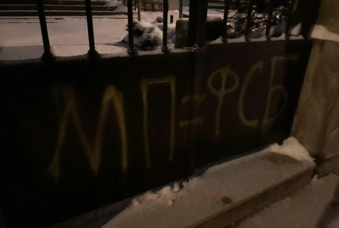 Активисты националистической организации С14 («Сечь») нанесли провокационные надписи на ограду и ворота Георгиевского кафедрального собора, а также входные двери восстановленного после пожара храма святого равноапостольного князя Владимира в микрорайоне Сыхов.
