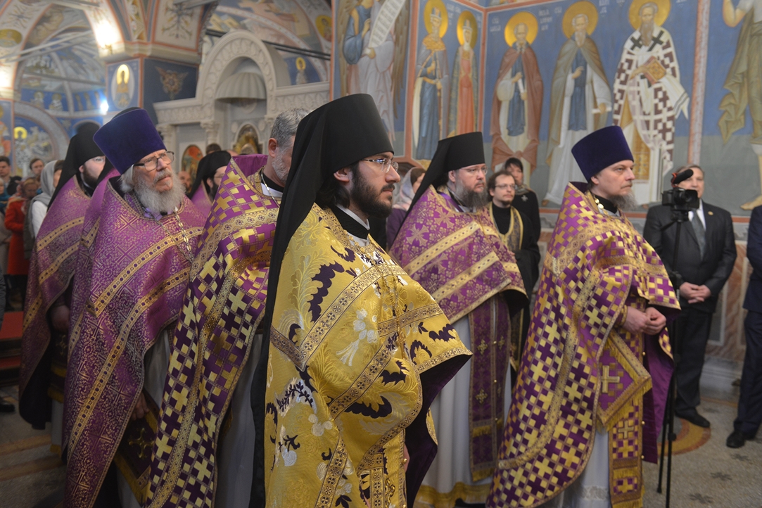 Архипастырю сослужили заместитель председателя Синодального миссионерского отдела игумен Серапион (Митько), руководитель Духовно-просветительского центра Православного Свято-Тихоновского гуманитарного университета протоиерей Лев Семенов, проректор по развитию Общецерковной аспирантуры и докторантуры иеромонах Иоанн (Копейкин), проректор ОЦАД по воспитательной и социальной работе протоиерей Михаил Немнонов, сотрудники и учащиеся ОЦАД в священном сане.
