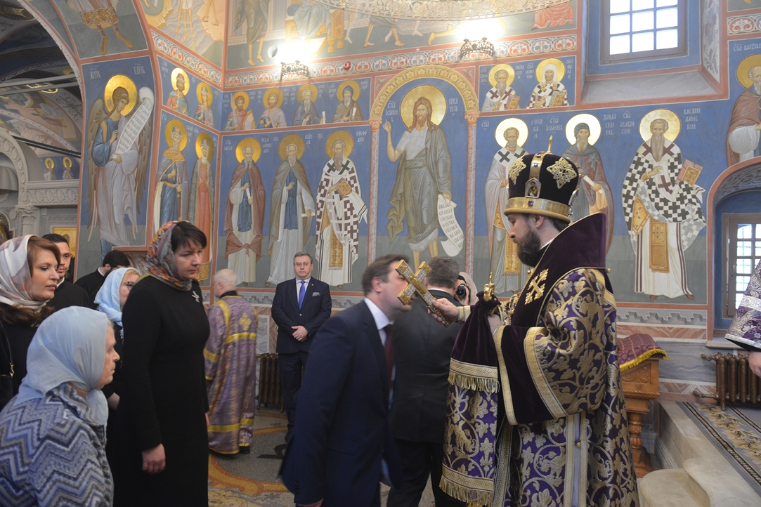 В храме собрались заместитель руководителя Федеральной службы по надзору в сфере образования и науки Н.А. Наумова, ректор Московского педагогического государственного университета А.В. Лубков, ректор Московского государственного лингвистического университета И.А. Краева, проректор по развитию МПГУ В.В. Страхов, проректор ОЦАД по научной работе Д.В. Шмонин, члены профессорско-преподавательской корпорации и учащиеся Общецерковной аспирантуры и докторантуры, прихожане.