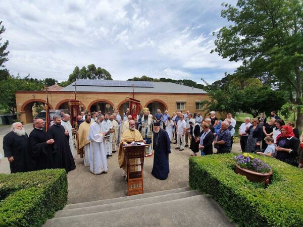 По заамвоној молитви прочитана је молитва за кишу због пожара који су погодили већи део Аустралије, уследила је литија око храма који је задужбина почивших Војислава и Јелене Милетић, који су као његови благочестиви ктитори у самом храму и сахрањени. Храм Светог Алимпија Столпника, како је Његово Преосвештенство нагласио, чува двије светиње – чудотворну икону Пресвете Богородице, која манастир чува и мошти преподобног хиландарског проигумана старца Никанора.