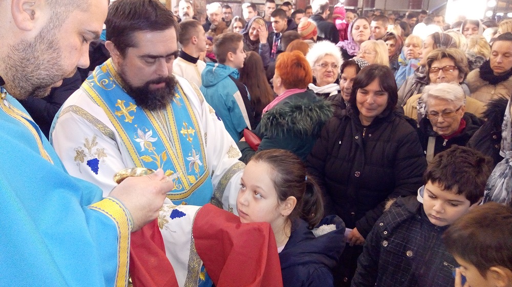 Храм је био дупке испуњен верним народом који се дивио новоосликаној куполи кошутњачке светиње, али ништа мање и великом броју присутних ученика веронауке млађих разреда Основне школе Љуба Ненадовић у Жаркову. Њих око осамдесет одазвало се позиву свог вероучитеља ђакона Хаџи Ненада Јовановића и, после прописане припреме у молитви и посту, у највећем реду и благочешћу приступили су светој Чаши.