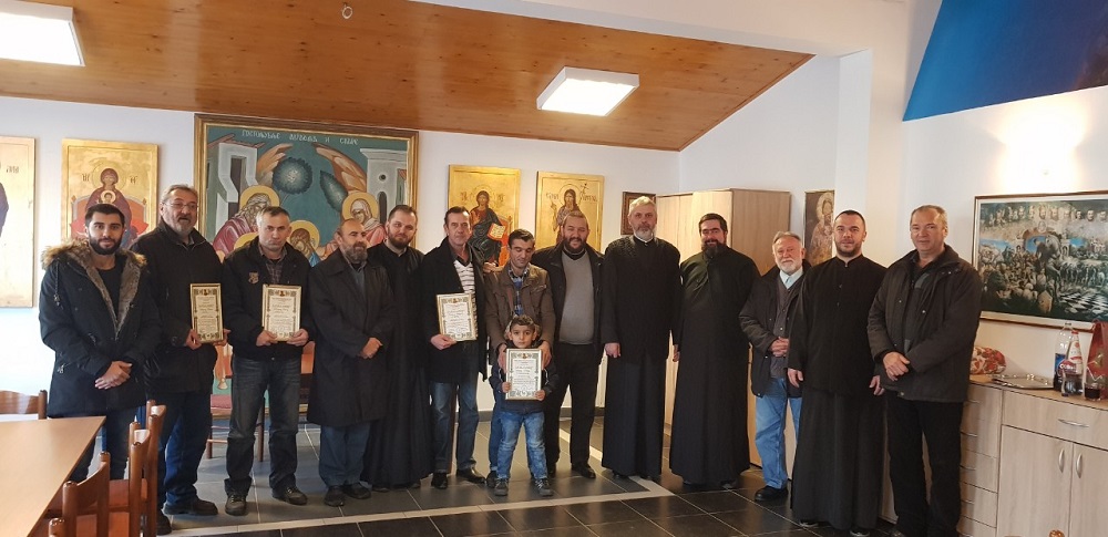 После заамвоне молитве, старешина храма јереј Никола Гаврић уручио је заслужним трудбеницима на великом делу живописања светог храма пригодне парохијске захвалнице које ће их заувек подсећати на благодарност Свете Цркве на њиховој жртвеној љубави и трудољубљу на славу Божју. Захвалницама су награђени радници фирме Косбет, власника г. Николе Косовца из Београда, који је велики добротвор овог и многих других храмова. Поред свега што су чинили и чине за овај свети храм, г. Никола Косовац и његово предузеће су бесплатно уступили и монтирали скелу за захтевни подухват, а дужна благодарност је исказана и фрескописцу г. Миловану Белошевићу и његовим сарадницима који су живопис извели на, заиста, маестралан и непоновљив начин.