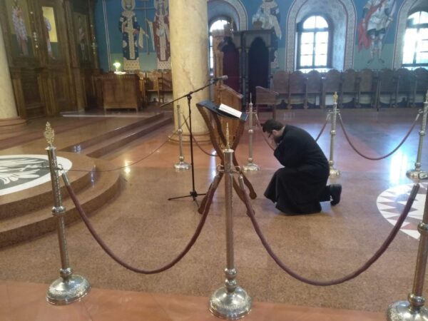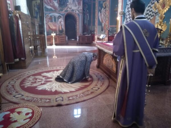 Упетак, 03. априла 2020. године, на дан када прослављамо Преподобног Јакова Исповедника, у нишком Саборном храму Силаска Светог Духа на Апостоле служена је јутарња служба и Света Литургија пређеосвећених Дарова.