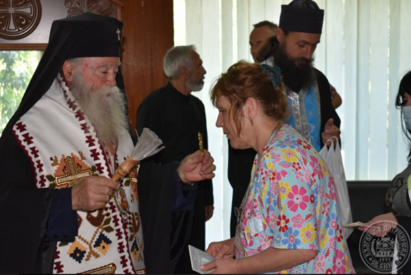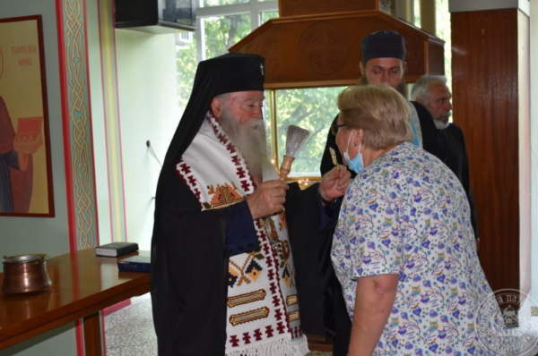 След водосвета медицинския персонал бе поръсен със светена вода и се поклониха на частица от мощите на св. вмчк Пантелеймон. В своето слово митрополит Гавриил разказа житието на св. вмчк Пантелеймон, като посочи, че светецът е завършил при най-добрите лекари всички достъпни по неговото време медицински науки. Бил е поканен от римския император Максимиан за придворен лекар, но когато е станал християнин, той започва да лекува безкористно и безвъзмездно, не толкова със своите знания по медицина, колкото с молитва към Господ Иисус Христос. Болните са изоставяли другите лекари и всички са отивали да се лекуват при св. вмчк Пантелеймон, което е породило завист в някои от лекарите и те са го наклеветили пред императора, че той е християнин. Императорът първо се опитал с ласкателства и обещания за богатство и светска кариера, да накара светецът да се отрече от Господ и да принесе жертва на идолите. След категоричния отказ, св. вмчк Пантелеймон е бил подложен на много тежки мъчения ,по време на които са ставали велики чудеса и много хиляди езичници, виждайки това, са приемали християнската вяра. Накрая светецът е бил осъден на мечно посичане. До ден днешен св. вмчк Пантелеймон върши велики чудеса, лекува и болни, на които лекарите тук на земята не могат вече с нищо да им помогнат.