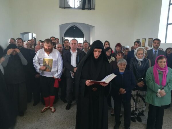 После читања одељака из Светог Писма, окупљени народ пригодном беседом је поздравио митрополит Порфирије, а по свршетку Литургије вернима се архипастирском беседом обратио и владика Јован. На крају молитвеног славља одслужен је помен пострадалима, а у славу Божју, част и спомен свих Светих новомученика српских који венац славе задобише освештан је славски колач и жито.
