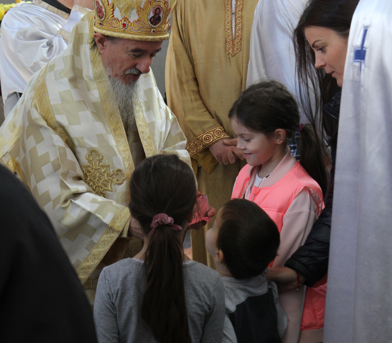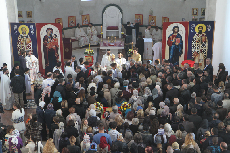 На ђаконов усклик Са страхом Божјим, вером и љубављу приступите ка живоносној Трпези Господњој потекла је мирна река људи предвођена дечицом. На самом концу свете Литургије гостујући архијереј, владика Атанасије, речито је и веома садржајно поздравио свештено сабрање Цркве Божје, благоверног народа Његова. Благодарност Господу и Епископу бачком, Преосвећеном г. Иринеју, који је благословио да га ми, какви год да смо, принесемо Богу Оцу, само је била увод у најаву додатне радости која ће данашњи сусрет верних са Господом, обогатити радошћу доласка Светог Саве, кроз делић моштију, међу њих. Он је нагласио да је само радост коју Господ дарује Собом, и кроз свете Његове, постојана и препорађа срца људска. Зато долазак Светог Саве, и на овај свечудесни начин, да остане међу децом његовом извориште је васкрситељне силе Вишњега и свемоћна инспирација за живот по бесмртним начелима.