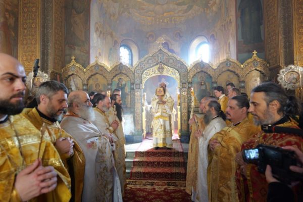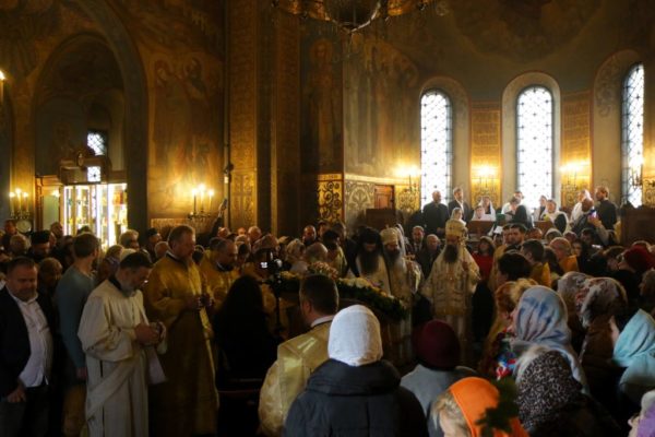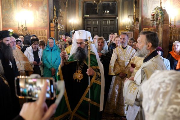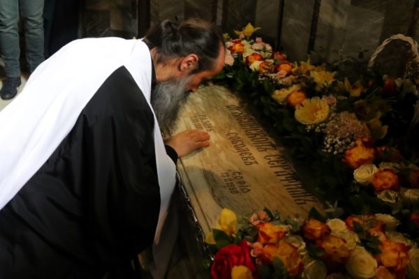 После богослужения Предстоятель Болгарской Православной Церкви поклонился честным мощам святителя Серафима в крипте храма.