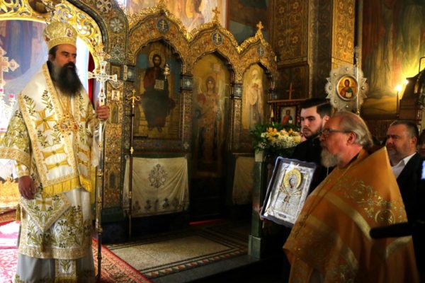 От лица всех прихожан отец Владимир преподнес Святейшему Владыке икону Пресвятой Богородицы «Семистрельная», отметив, что именно перед этим образом члены приходской общины молились в преддверии Собора, который избрал Патриарха Болгарского: «Пусть сей образ напоминает Вам о том, что здесь, в этом храме, люди всегда молятся о Вашем служении. И мы, глядя на этот образ, тоже понимаем, насколько патриаршее сердце переживает любое нестроение в Церкви и болеет о благе всех своих духовных чад. Будем просить Господа, чтобы молитвами Пресвятой Богородицы и святителя Серафима Господь укрепил Вас в Вашем Патриаршем служении на многая и благая лета, а также чтобы Ваше служение в этом храме в день памяти святителя Серафима стало доброй традицией».