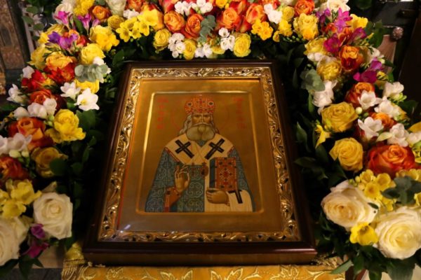 По заамвонной молитве в центре храма был совершен молебен святителю Серафиму.