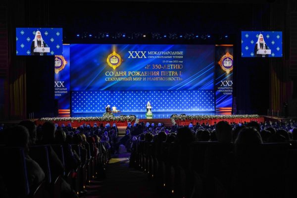 23 мая 2022 года в Государственном Кремлевском дворце в Москве состоялось пленарное заседание XXХ юбилейных Международных образовательных чтений «К 350-летию со дня рождения Петра I: секулярный мир и религиозность», сообщает Пресс-служба Патриарха Московского и всея Руси.