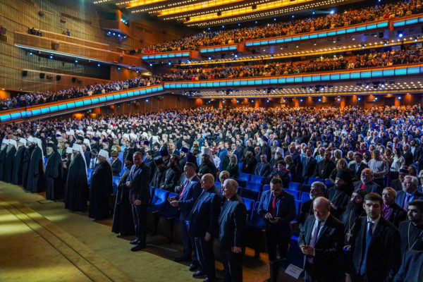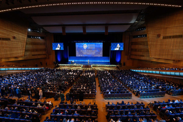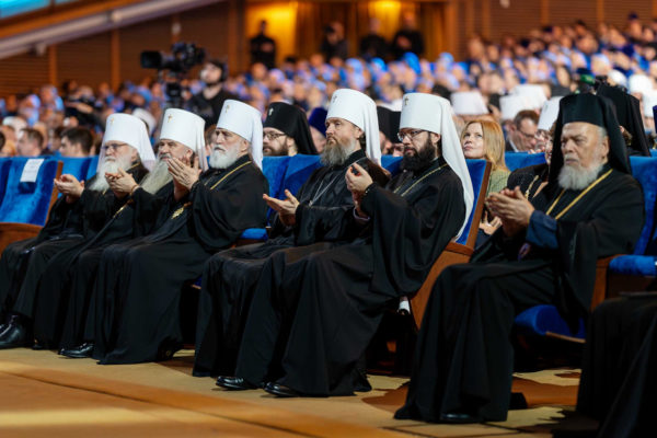 В зале Государственного Кремлевского дворца собралось свыше 5 тысяч человек: Преосвященные архипастыри – члены Священного Синода и Высшего Церковного Совета, главы экзархатов, митрополий и епархиальные архиереи Русской Православной Церкви, представители Поместных Православных Церквей, члены Межрелигиозного совета России, полномочные представители Президента Российской Федерации в федеральных округах, представители обеих палат российского парламента, руководители и представители федеральных и региональных органов власти, ректоры и представители свыше 250 российских и зарубежных вузов, директора и педагоги общеобразовательных организаций, священнослужители, приходские специалисты, деятели науки и культуры.