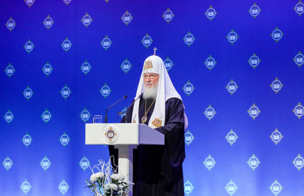 Святейший Патриарх Кирилл, председатель Международных Рождественских чтений, выступил с основным докладом перед участниками торжественного собрания.