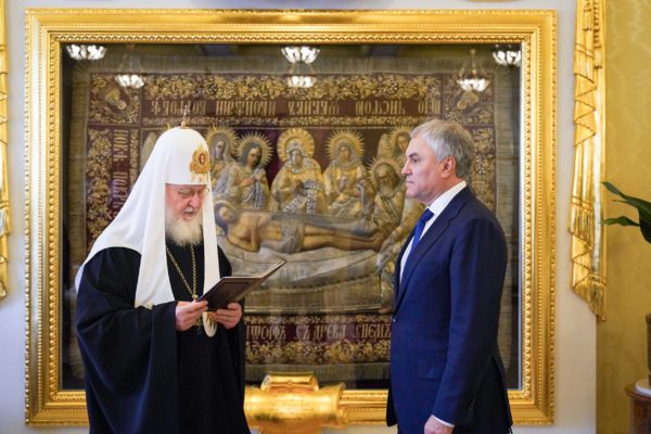 Святейший Патриарх Кирилл вручил председателю Государственной Думы В.В. Володину орден благоверного князя Александра Невского